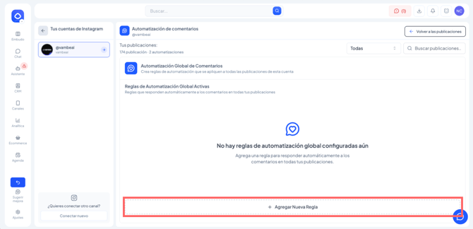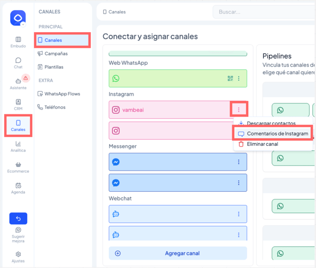 Verificar que tu cuenta de Instagram aparezca activa en la sección Canales.