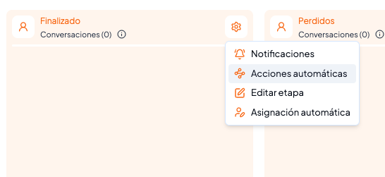 - Entrar a Configuraciones → Acciones automáticas desde la etapa correspondiente.