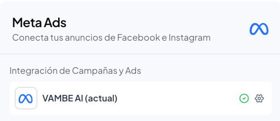 Tu cuenta de Meta Ads ya quedó correctamente conectada a Vambe Ads.