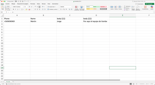 En este paso debes preparar el documento que contiene todos los contactos que recibirán el mensaje.