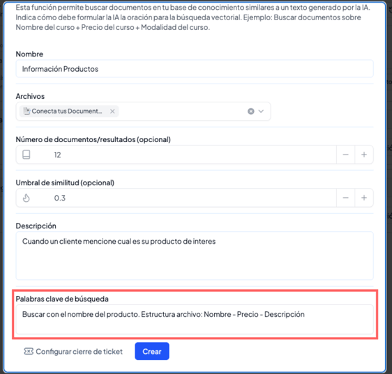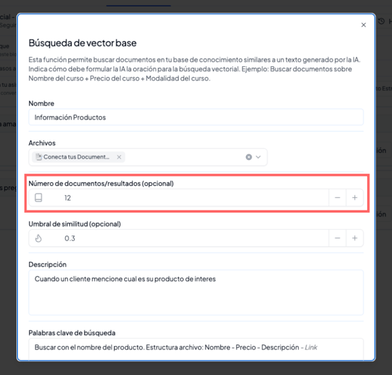 Si se coloca 12, la IA traerá los “12 fragmentos más similares” respecto a la pregunta del cliente.
