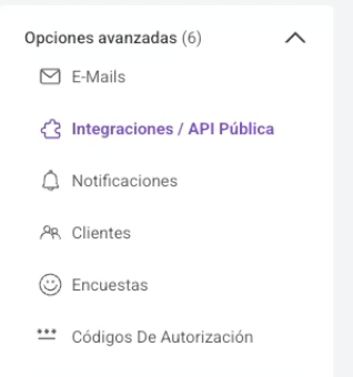 Dentro de esta sección, haz clic en Integraciones/API Pública.