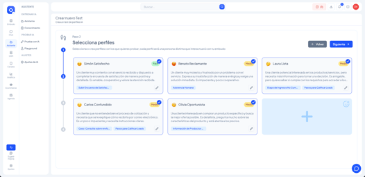 Simularás conversaciones como si ese asistente estuviera atendiendo un cliente real, pero solo dentro de esa etapa.