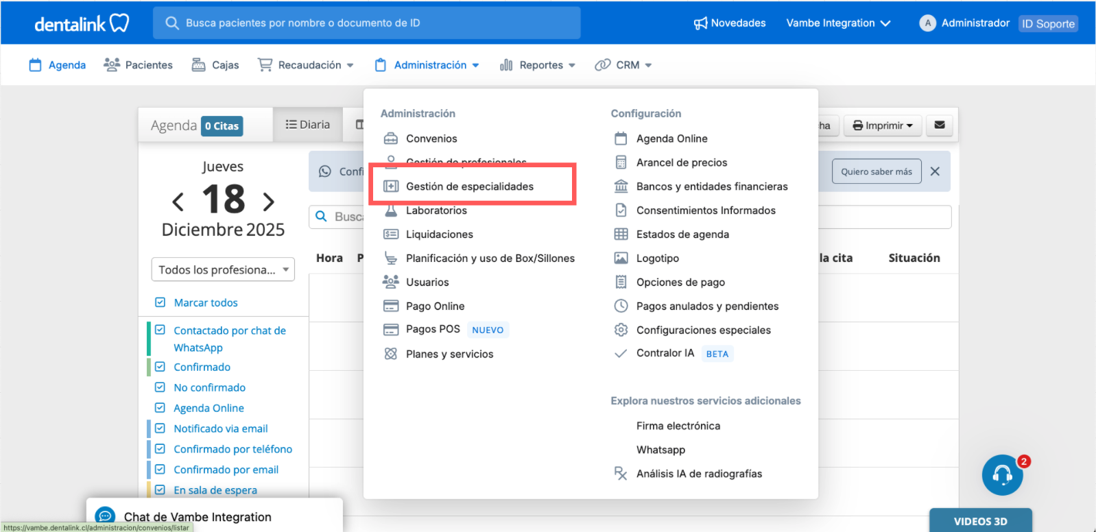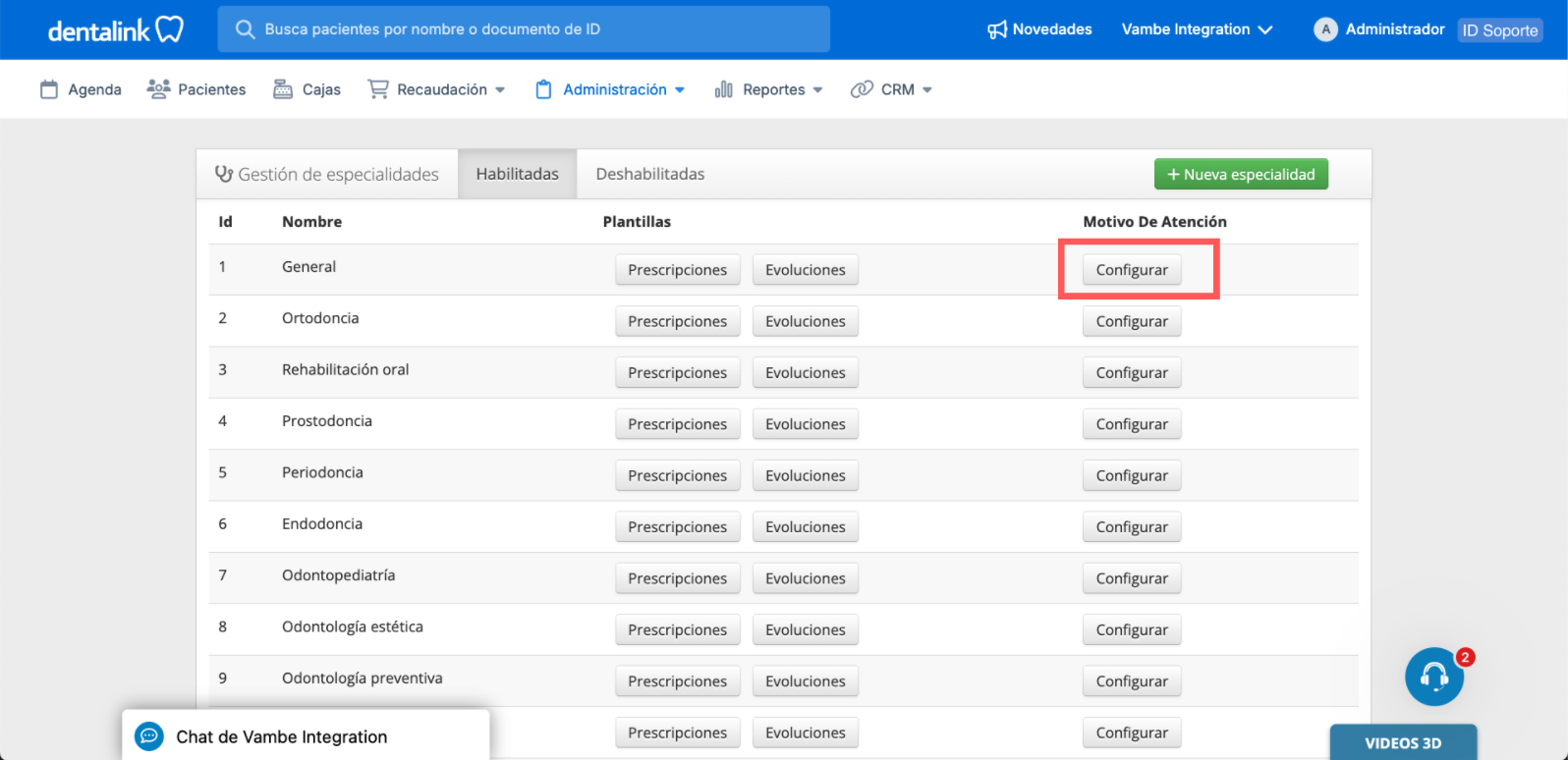 En este artículo aprenderás qué configuraciones debes realizar en Dentalink para que los motivos de atención y especialidades se muestren correctamente y puedan ser utilizados para el agendamiento automático.