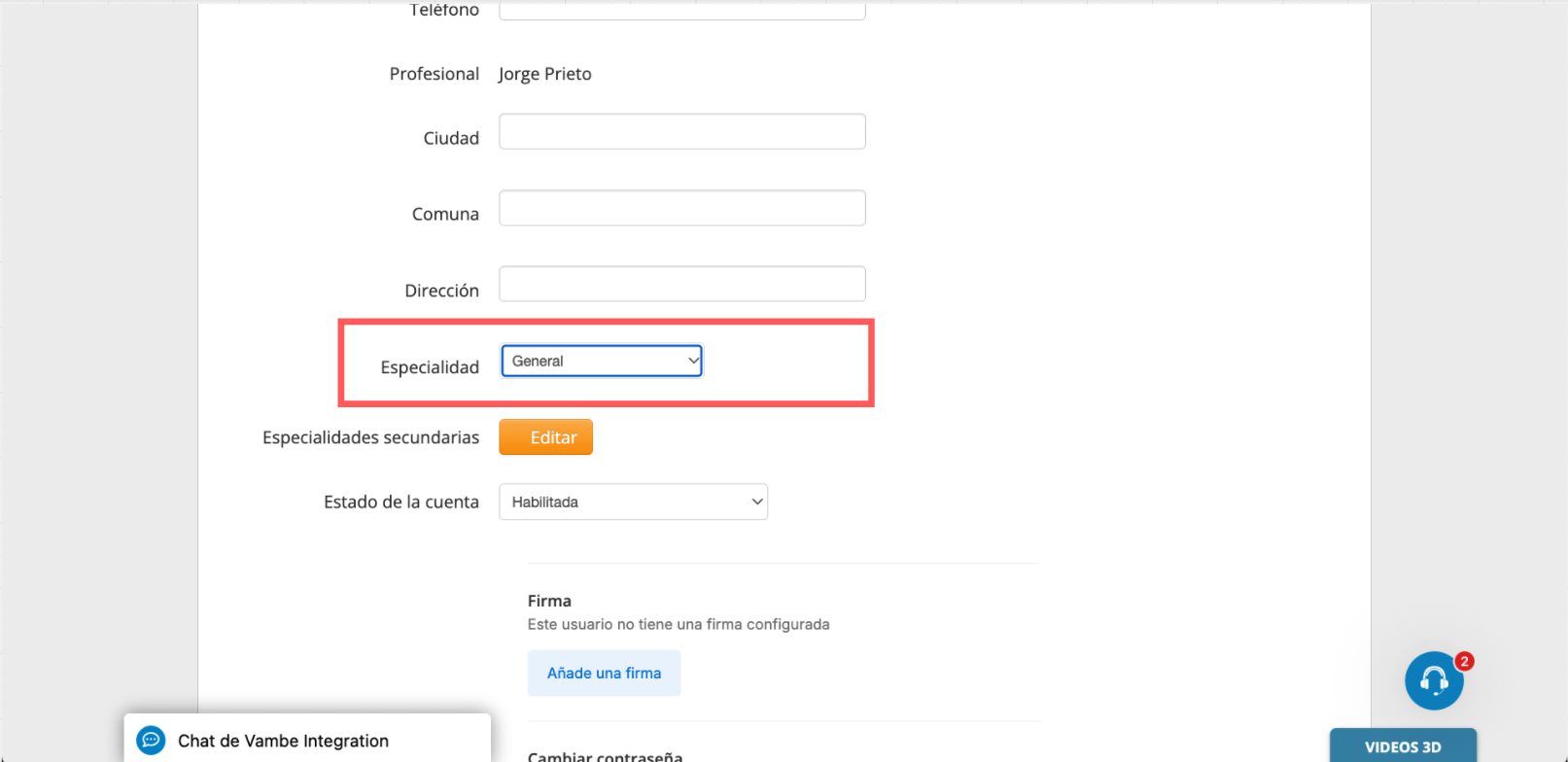 Paso 3: Verificar que la especialidad esté asignada a un profesional