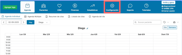 Agendas disponibles → los horarios y profesionales que estarán visibles en Vambe.