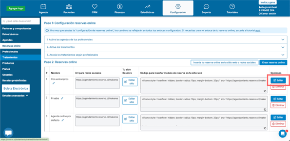 Si ya tienes un calendario creado, como la agenda online por defecto, puedes editarlo.
