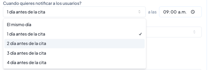Define cuándo se enviará (por ejemplo: 24 horas antes).