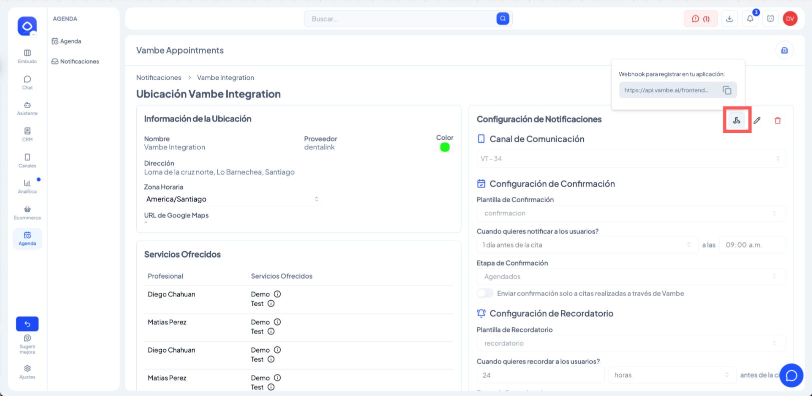 Integración de agenda activa en Vambe